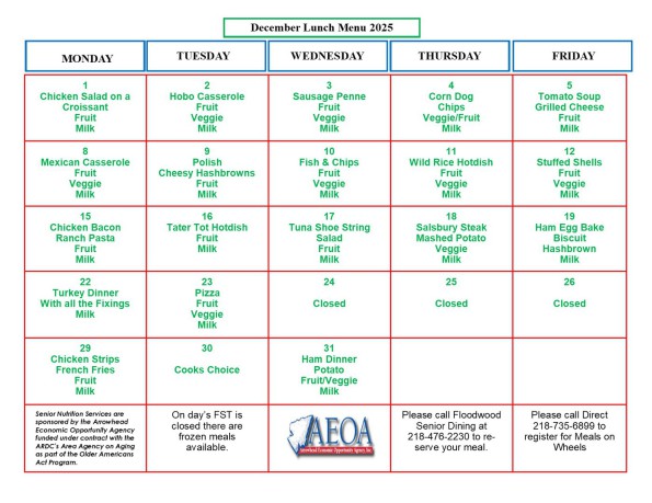 To register: AEOA 1-800-662-5711 ext. 6899 or 218-735-6899.